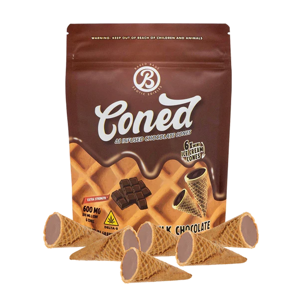 Coned are delicious mini sugar cones filled with rich Delta-9 THC chocolate. As a kind of chocolate delta-9 THC edible treat, they deliver a powerful head and body experience that will have you feeling at ease. Enjoy the best part of a sundae cone while feeling the incredible effects of Delta-9 THC!